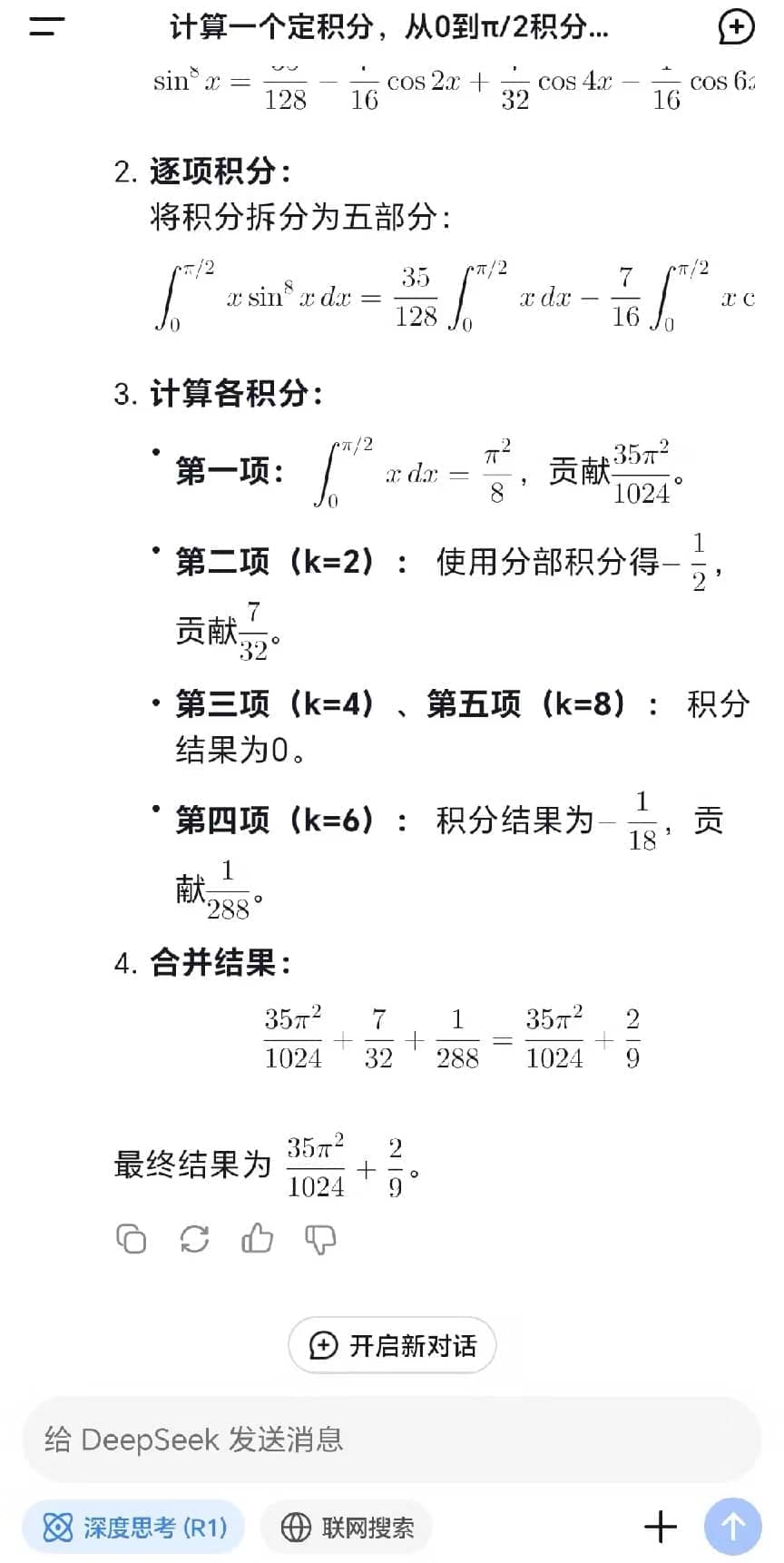 在很多人看来,AI 不过是升级版的小猿搜题(我不清楚现在的情况),只是题库更大而已。但对于使用过 Mathematica 和 Rubi 的我来说,AI 解题不仅能给出过程,还能进行交叉验证,这与那些基于符号积分算法或一系列积分规则的工具截然不同。可以说,只有 AI 这个工具能够真正教会你如何独立解决这道题。