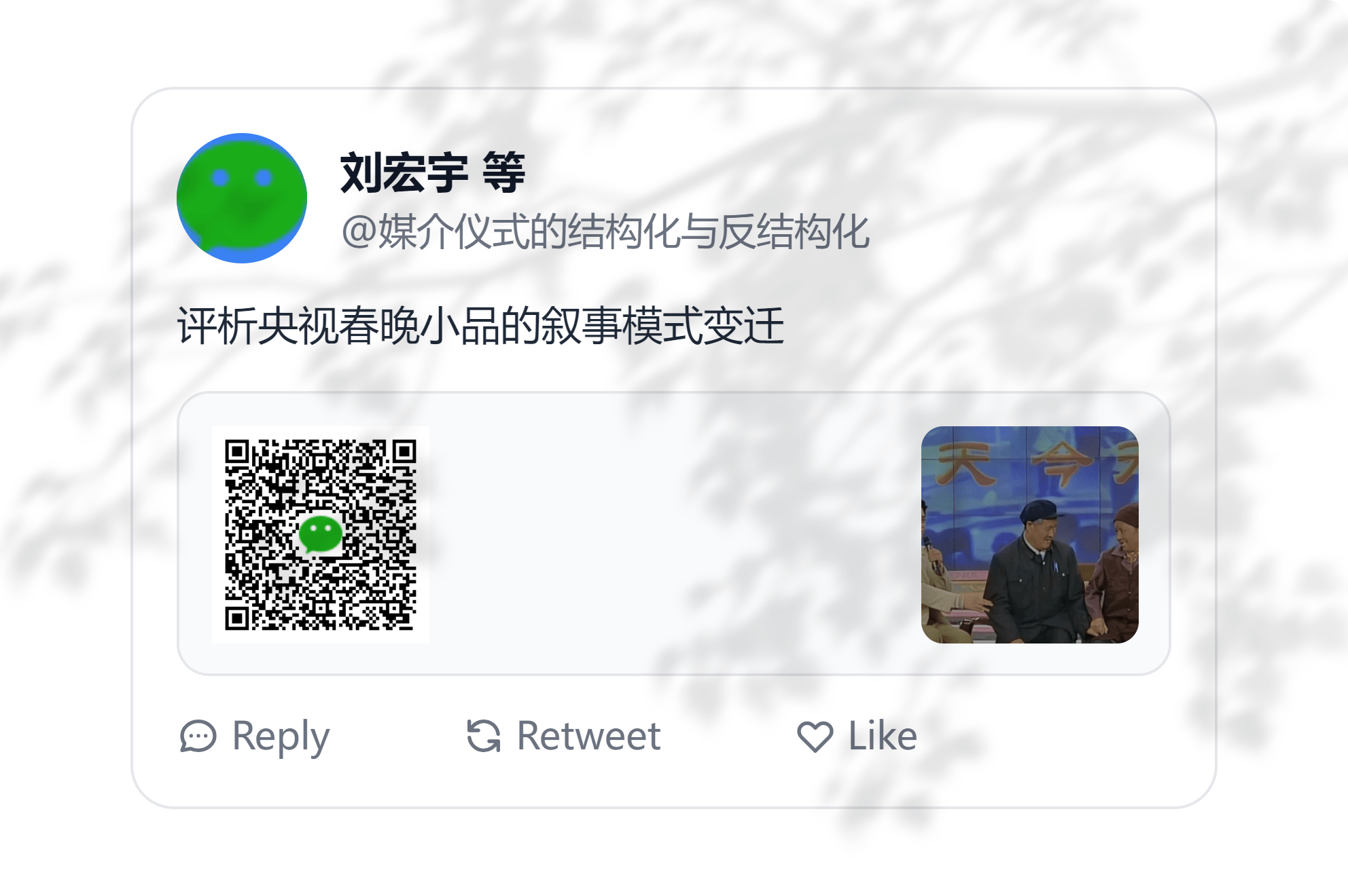 1. 反结构模式中的交融状态:一是人设的地位逆转,包括政治和经济地位逆转,通过小人物主导话语权,展现对社会矛盾的关注,最终回归既有社会结构;二是非正式语言与话语模仿,借助小人物的语言解构神圣逻辑,实现集体狂欢。