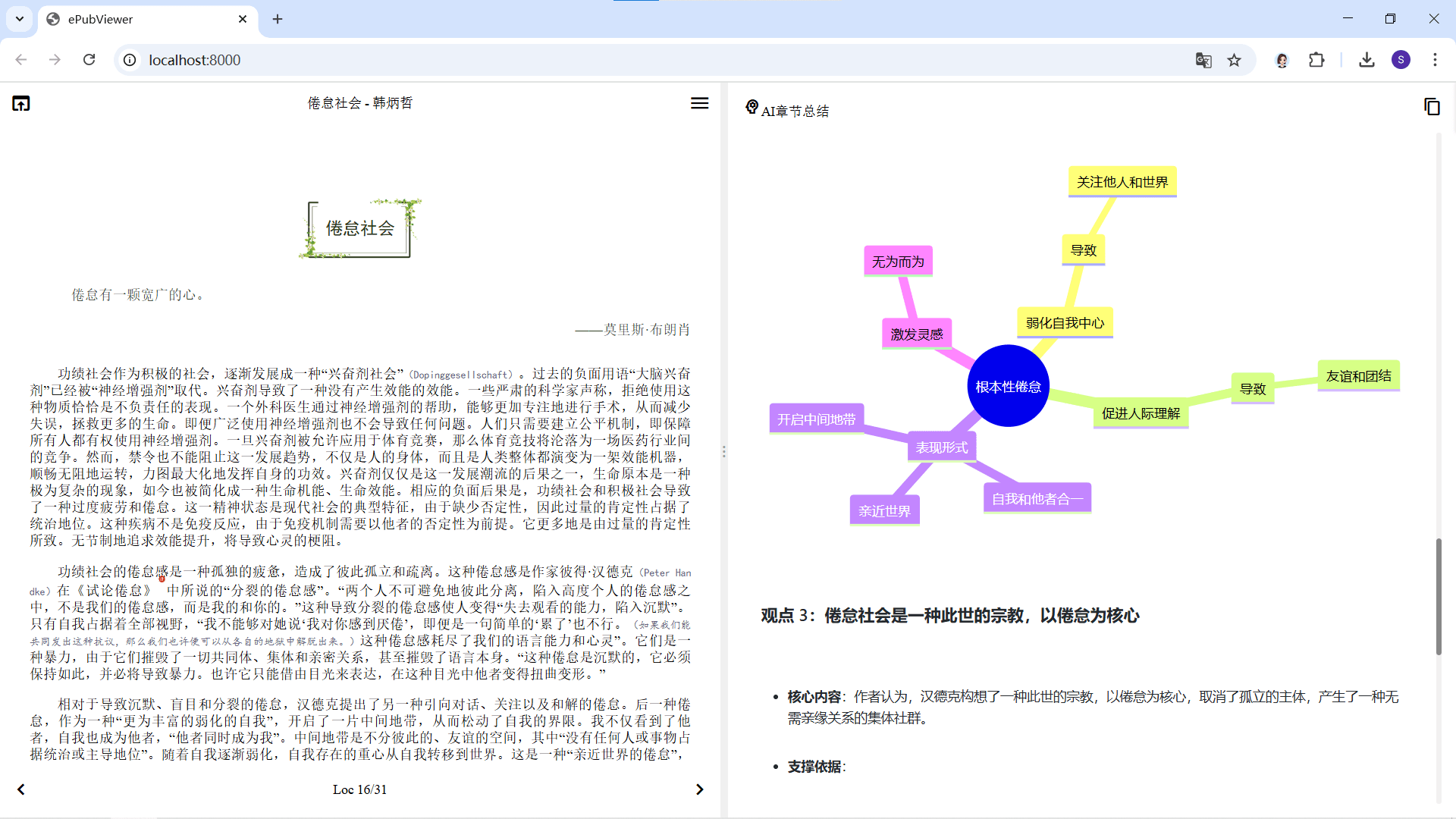 这是一个按章总结 epub 文件内容的开源应用,我给这个项目加上了复制功能,并且顺带修改了几个细节: