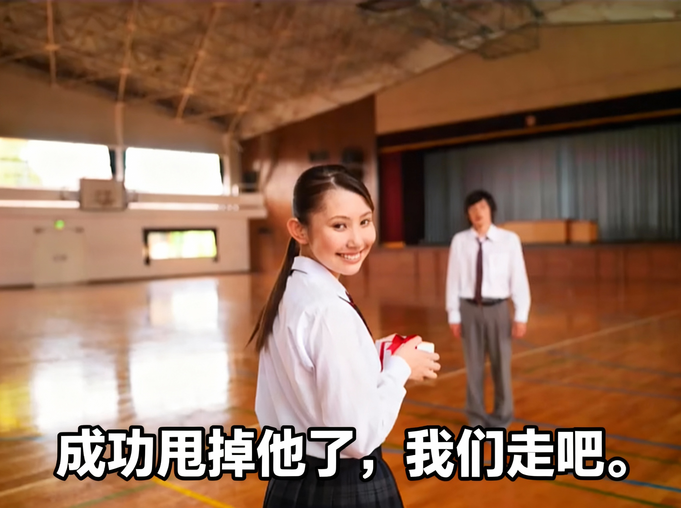 - 初始状态:AI 首先识别出画面是一个典型的“校园浪漫场景”(体育馆、少男少女、递东西)。