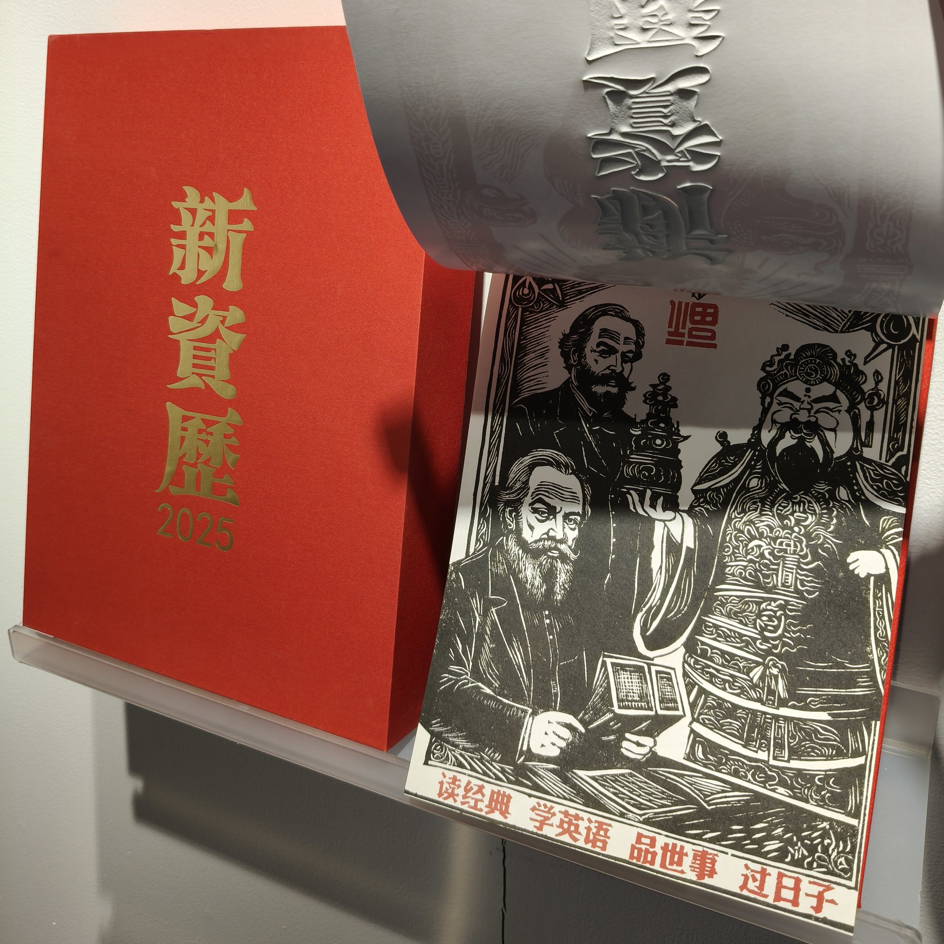 这是比较常规的一个,作者从《资本论》原文中按顺序抽出句子或者段落,从中挑出一个英文单词(原文不是德语吗?),让 ChatGPT 结合素材生成中英文例句,接着用 Stable Diffusion 根据例句生成插图,最后形成了一本年历,名曰《新资历》。