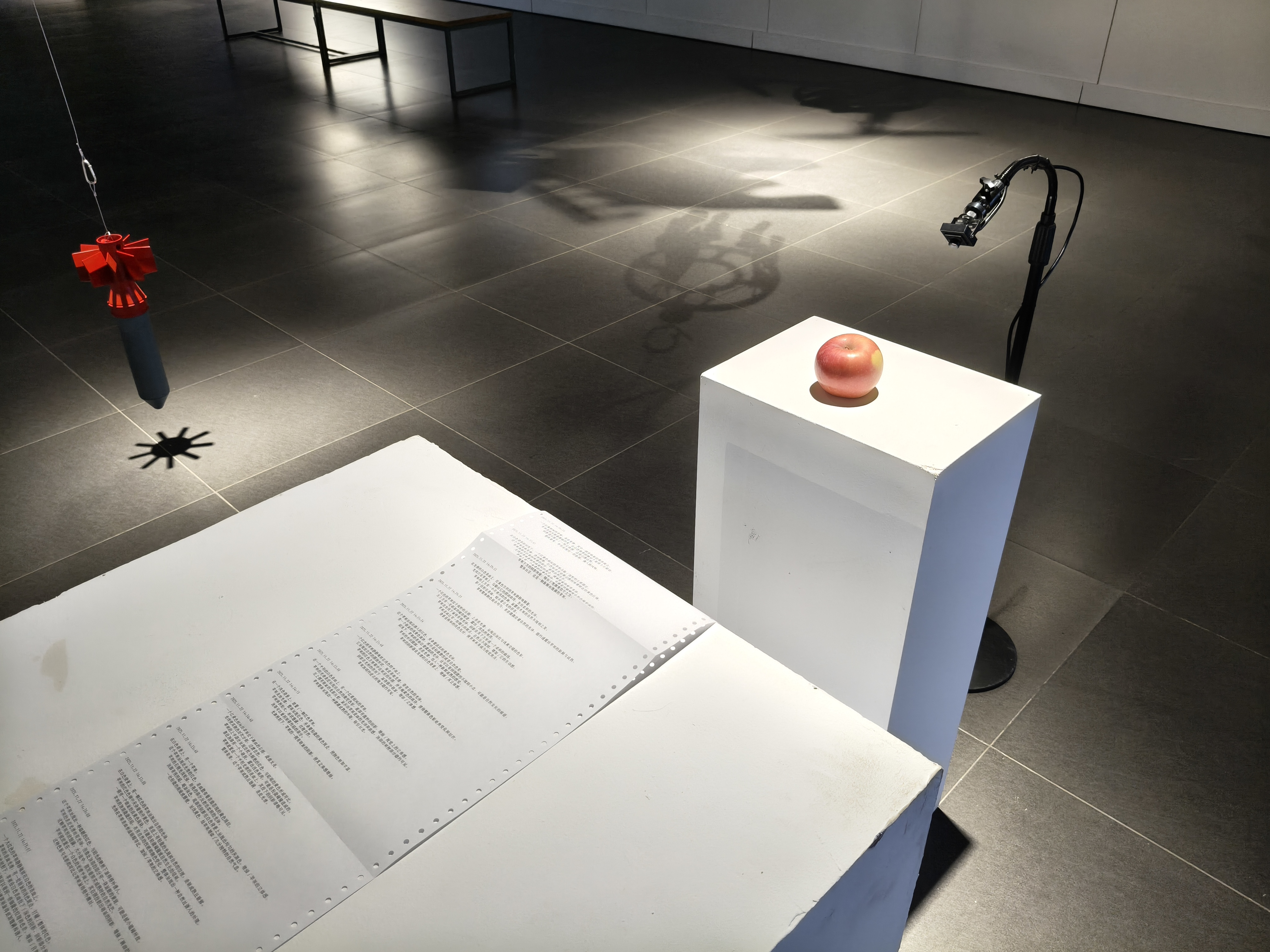 上周末,在一个小展厅里看了展,主题是“日常的生成”,副标题是“科技结构中的美学应对”。展出的不是绘画雕塑,而是比较偏向观念、实验的东西。有我想要的那种“幽默”在。