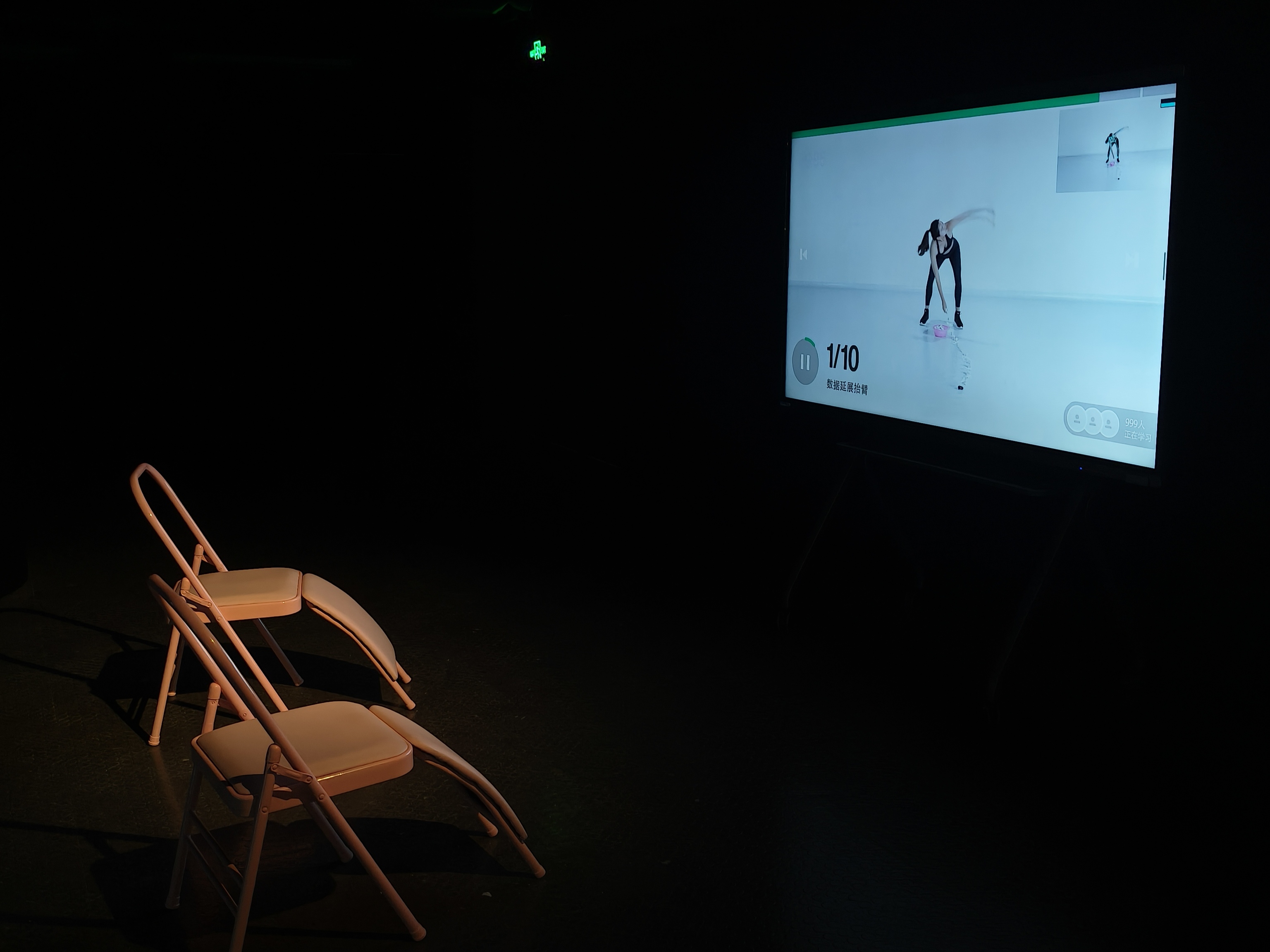 看了一眼介绍,才知道这些是模拟生产线的重复劳动,与 Keep 的重复健身动作并置。除了讽刺,每个画面都挺出乎意料,甚至令我忍俊不禁。