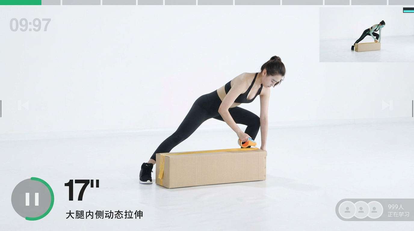 这个作品叫《Keeper》,在 Keep 的界面里,一个女人在用日常的动作健身——我一开始以为是日常的动作,不过后来看到扫条码、做美甲、在安全生产宣传牌上做支撑伸展,包括右上角的动作识别,就感觉有些异常。