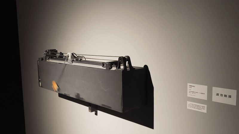这个像是从科技馆借过来的作品,当观众靠近,电机就会启动,完成“自动控制理论”的经典案例:倒立摆。