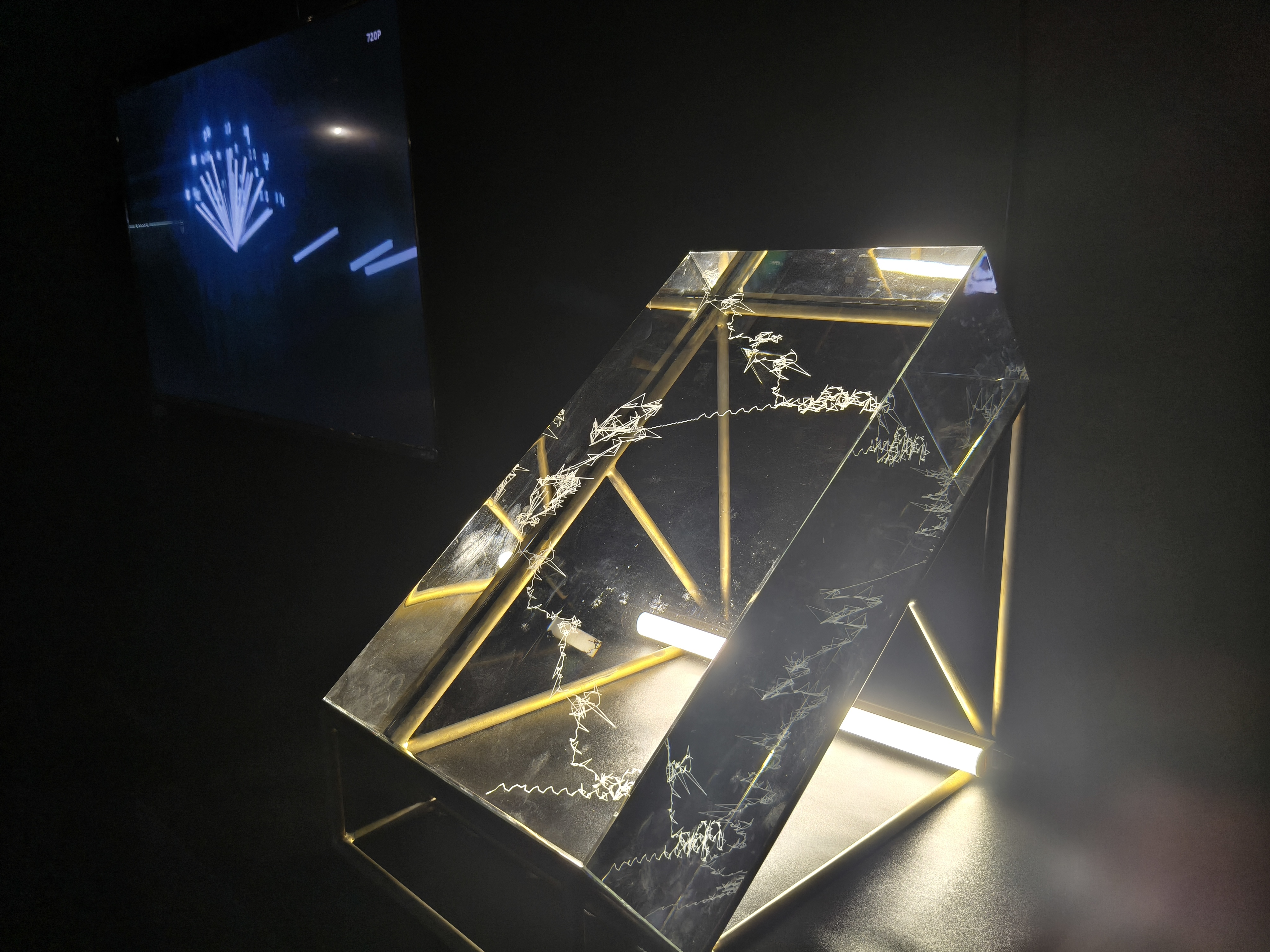 这次比上周展厅里的东西丰富得多,只能挂一漏万。还有很多互动型的作品,有很多的 AIGC 作品。不得不说,AIGC 的部分多到让我有些不适,很多细节不通、水印不去、清晰度不佳的作品滚动播出,视频里的文字还都是上一个版本的“西夏文”,流露出一种诡异气氛。