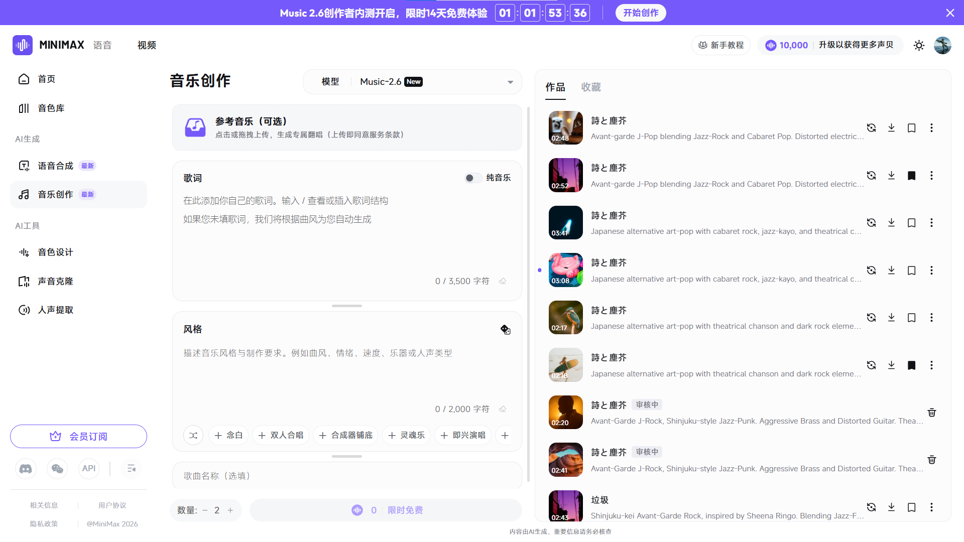 有一天收到短信,说是 MiniMax Music 模型使用还剩三天,哪怕不是很有兴趣,也算试了一试。